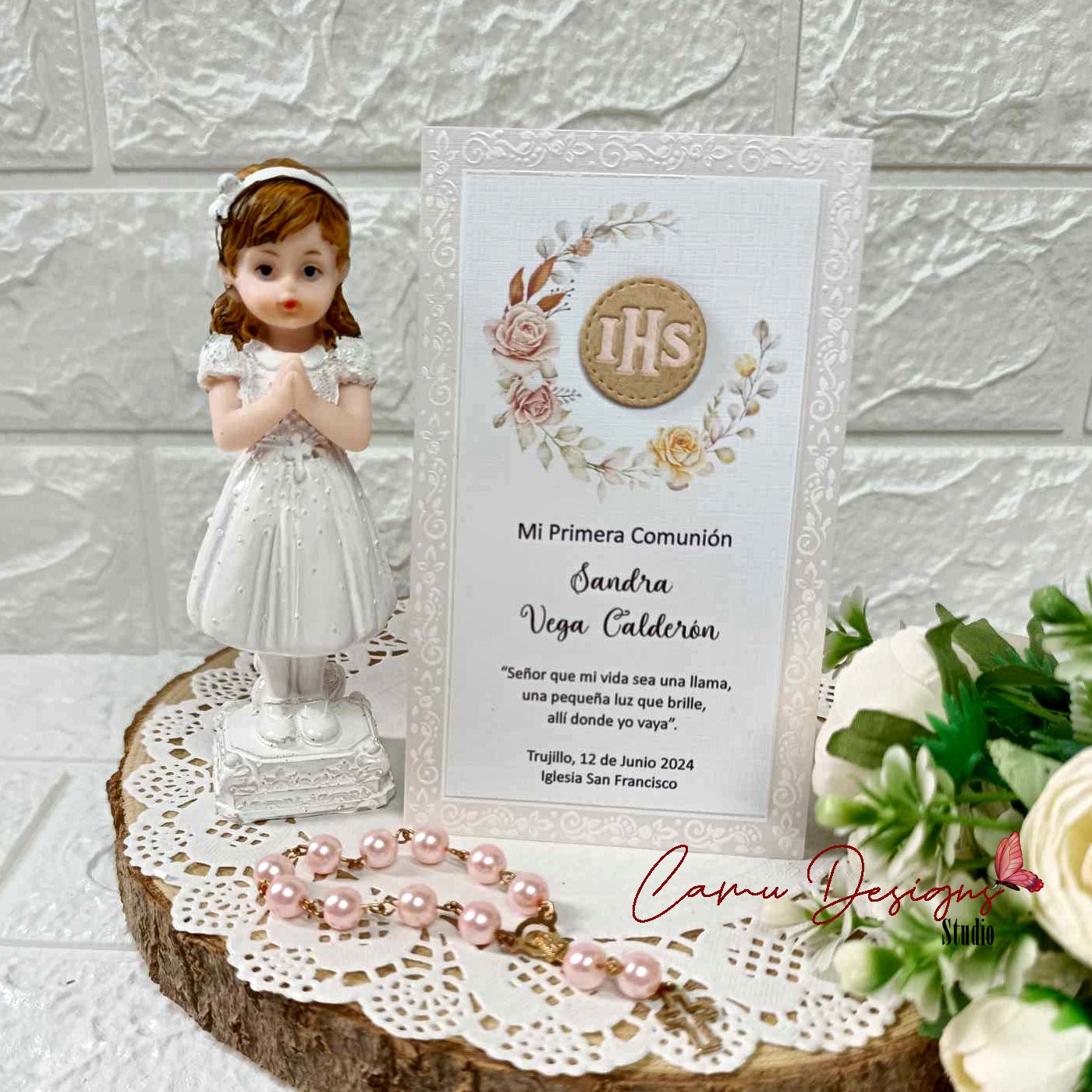 Un diseño delicado y armonioso, ideal para acompañar un momento tan especial como la Primera Comunión. Cada detalle está pensado para transmitir ternura, elegancia y significado.