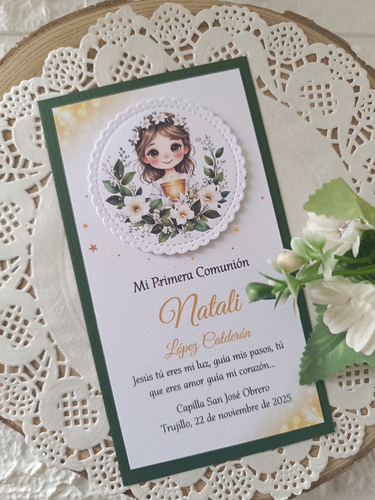 Un diseño delicado y armonioso, ideal para acompañar un momento tan especial como la Primera Comunión. Cada detalle está pensado para transmitir ternura, elegancia y significado.