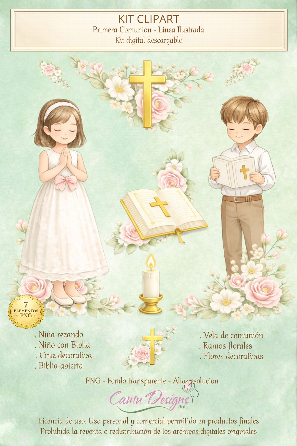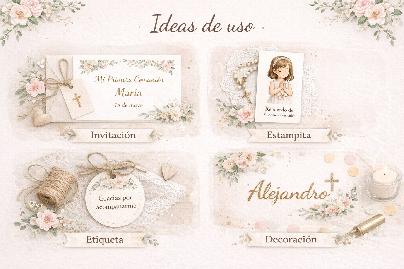 Este kit digital ha sido diseñado con un estilo delicado y elegante, ideal para crear composiciones únicas para celebraciones. Incluye elementos cuidadosamente ilustrados para que puedas crear tus propios diseños con armonía y estilo.